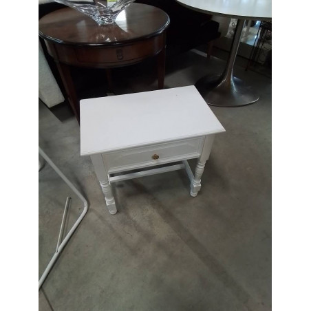 • CHEVET BOIS BLANC A ENTRETOISE 1 TIROIR POIGNÉE MÉTAL DORÉ STYLE RÉGENCE