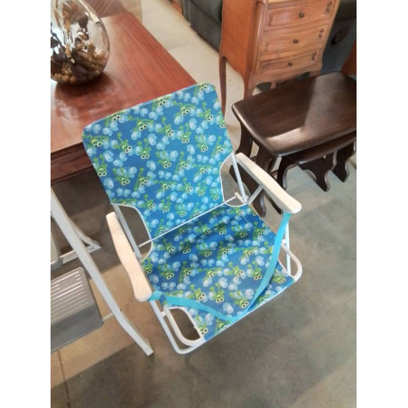 SIÈGE DE PLAGE PLIANT METAL BLANC ET TISSU BLEU AUX GRENOUILLES