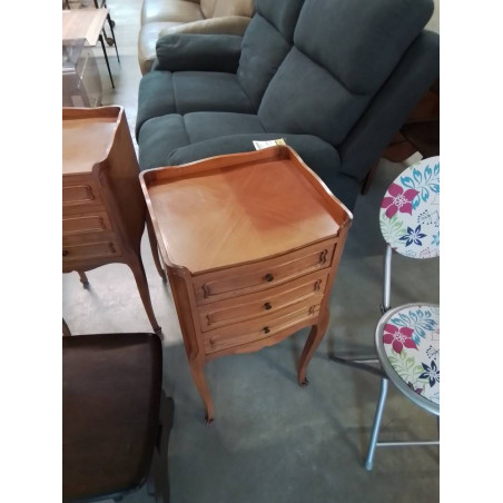 CHEVET BOIS CLAIR 3 TIROIRS PIEDS ESCARGOT STYLE RÉGENCE