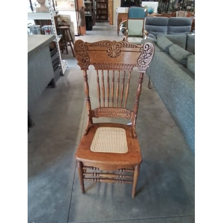 • CHAISE WINDSOR  CHENE SCULPTÉ ASSISE CANNEE DÉBUT XXE