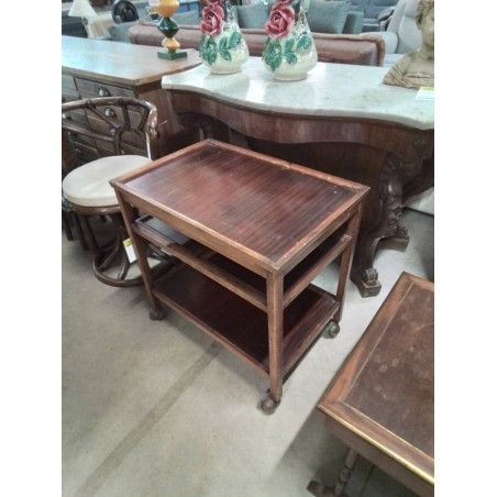 DESSERTE A ROULETTES ACAJOU 3 NIVEAUX ANNÉES 50