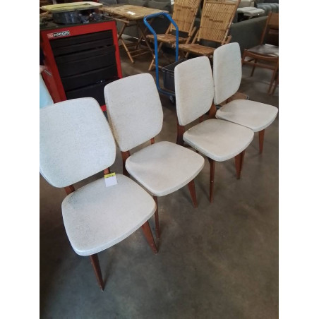 • 4 CHAISES BOIS ASSISE ET DOSSIER CAPITONNÉ SKAÏ ECRU ANNÉES 50