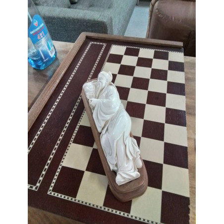 STATUETTE MANDARIN ALLONGE COUCHÉ RÉSINE SOCLE BOIS