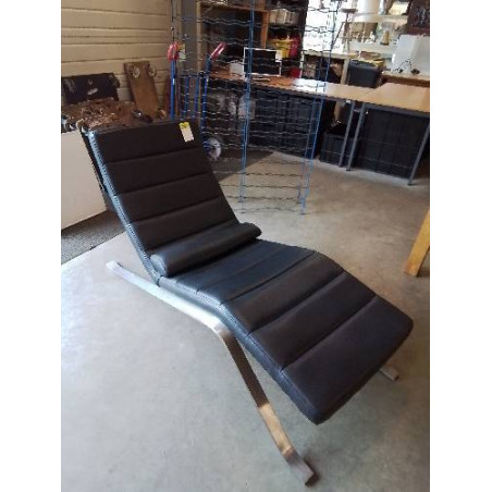 CHAISE LONGUE CUIR NOIR PIÈTEMENT MÉTAL BROSSÉ BOCONCEPT
