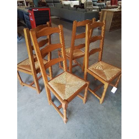 4 CHAISES BOIS CLAIR PAILLÉ A ENTRETOISE DOSSIER 3 BARREAUX CHANTOURNÉ